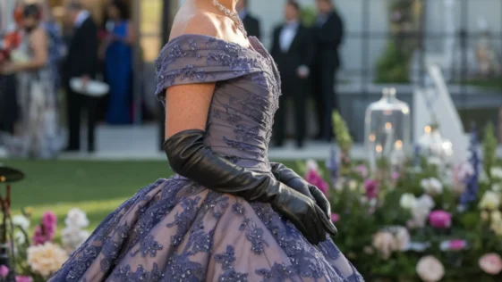 en ModeLa marraine de mariage la plus élégante de la saison : sa robe haute couture espagnole et ses gants en cuir font sensation